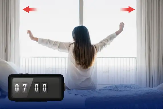 07h00: rèm tự động mở đón ánh nắng buổi sáng